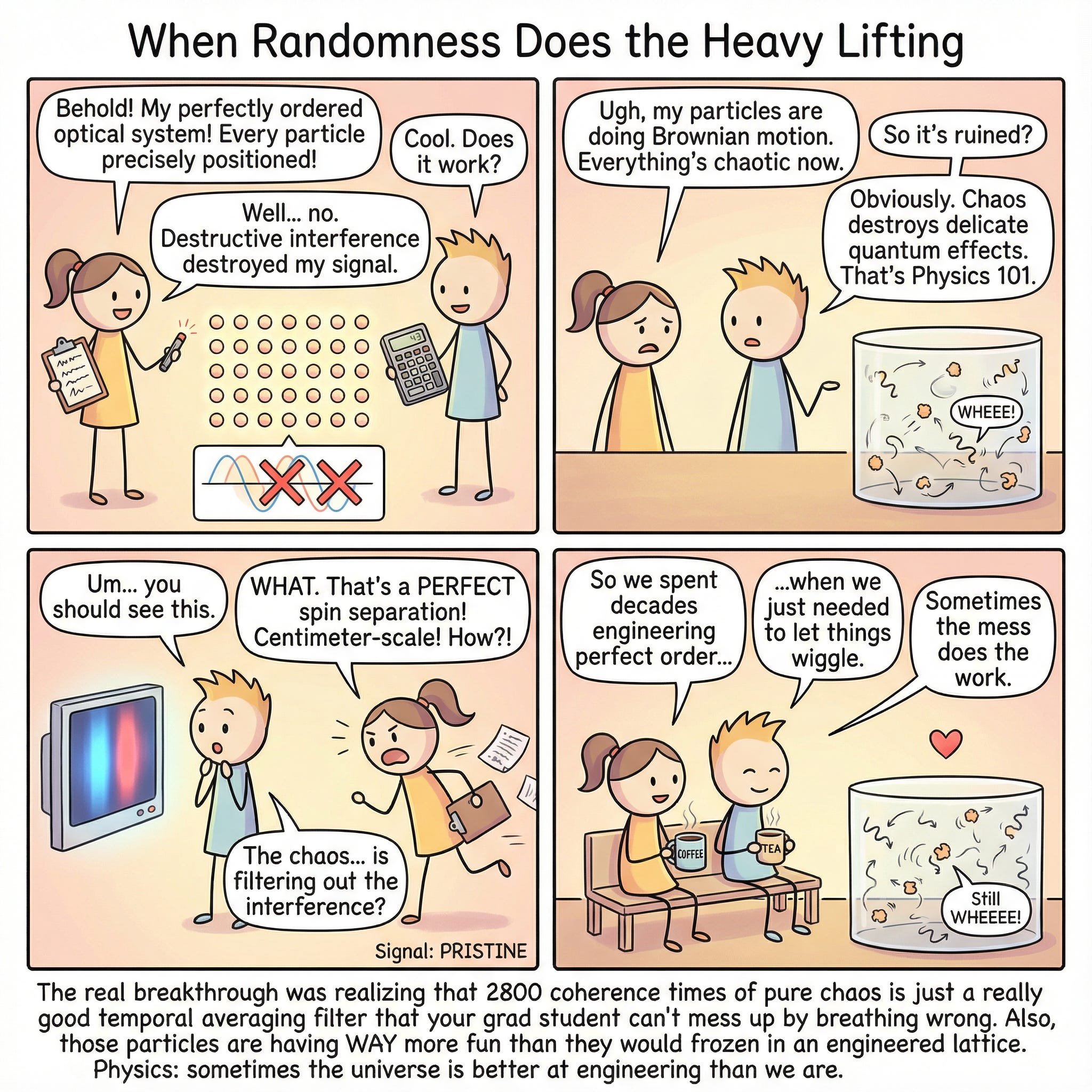This isn’t an argument for embracing disorder for its own sake. The Brownian Spin-Locking Effect works because the researchers understood both the order (the fundamental physics of how light scatters off spherical particles) and the disorder (the thermal chaos of Brownian motion). They didn’t choose one over the other. They found the place where they work together.